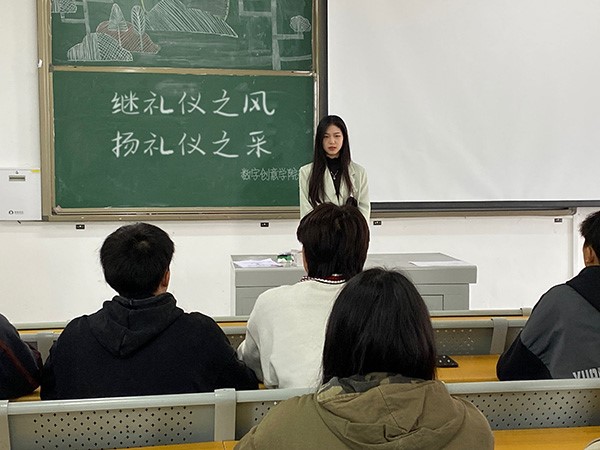 此次选拔旨在为更好的在开展文娱方面工作,挖掘和培养能够在三亿各类活动担任礼仪的同学。选拔活动分为自我介绍、礼仪展示、随机问答三个环节。评委将通过几个要点:言谈儒雅、服饰得体、仪表端庄、神态大方对选手进行面试。经过评委们一一面试,最终选出了12位优秀礼仪队成员。