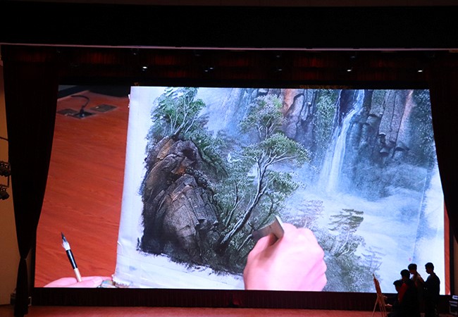 讲座围绕刀画的起源与传承、形式、内容以及未来的发展方向。两位老师现场制作刀画,展现出一场视觉盛宴。