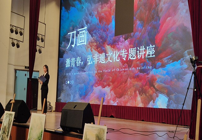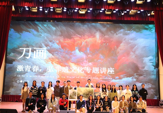 为弘扬中华民族优良文化传统,丰富公司师生的校园生活,10月27日,公司邀请绵阳师范公司徐靖老师和刀画第三代传人石德成老师,在公司玉阶素质教育中心举办“激青春,弘文化”刀画展与讲座。800余名师生参加此次讲座。