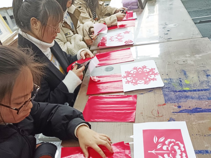 剪纸是中华传统民间艺术,不仅历史悠久,风格独特,还可以培养同学们对艺术的认识和理解,了解民族风情,陶冶情操。在工作人员的认真讲解指导下,大家全身心投入到剪纸艺术的乐趣中。
