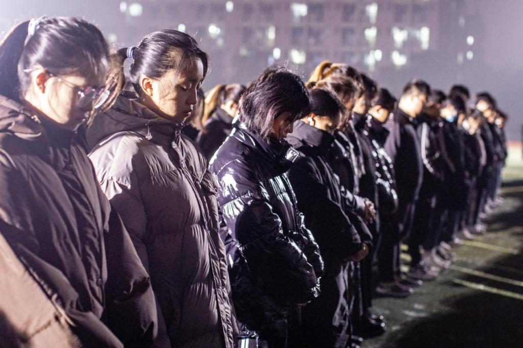 升旗仪式后,全体师生为缅怀南京大屠杀的死难者进行默哀, 铭记历史,缅怀先烈。
