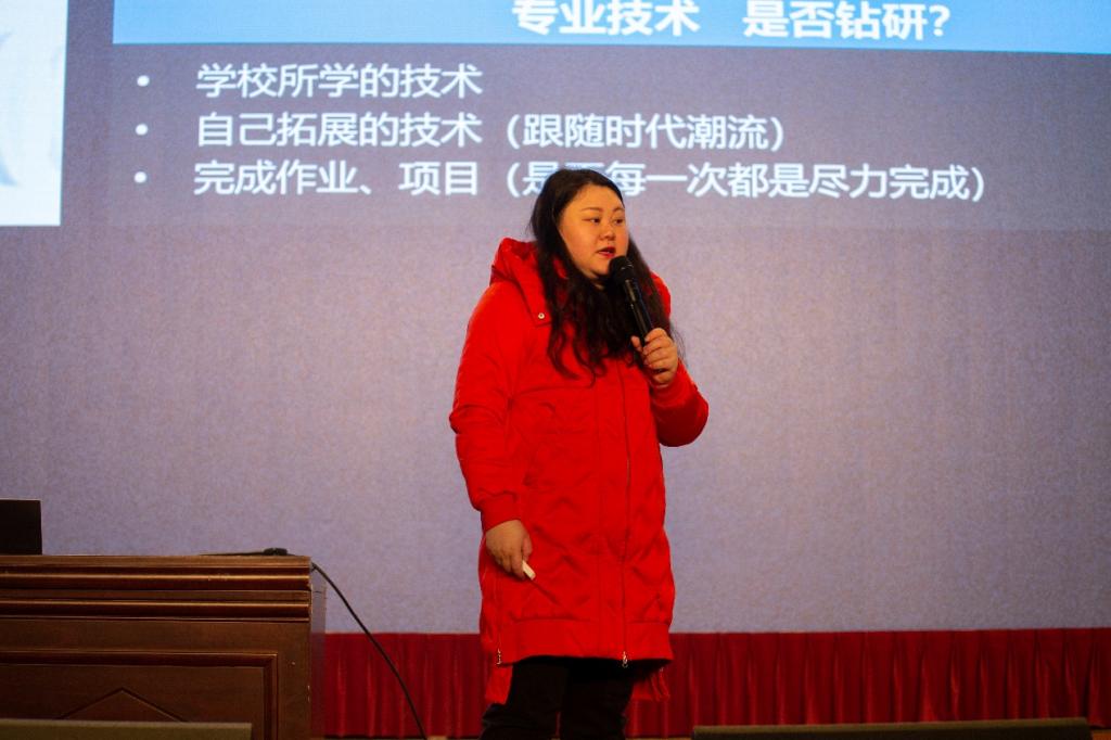 主讲嘉宾以员工理想的老员工活与现实的老员工活为切入点,揭示当前老员工生活迷茫、沉迷网络、过度娱乐等现象,引发在场同学的自我剖析和共鸣。在职业认知方面,分析了当前的就业形势和职业能力素养,通过讲解以往专科生就业经历,引导同学们明确职业规划,树立职业理想。希望同学们通过大学三年的时光锻炼自己的能力,丰富自身的内涵。
