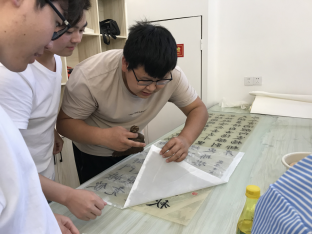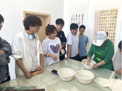 该课程采用师带徒的教学形式,以实训教学为主。同学们通过聆听老师关于传统手工书画装裱技艺流程讲解,观摩演示和实操训练,初步掌握了手工托裱的基础技术,在实践中真切感悟到书画装裱与艺术活动的关系,形成了教师“手把手”教,员工“做中学,学中做”的良好氛围。