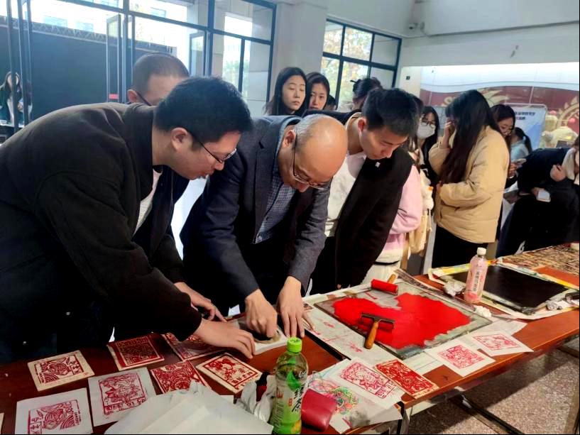 本次展览特设非遗体验区,供观展者亲自体验白族甲马版画的制作过程。在工作室同学们的协助下,观展者们得以完成自己的版画作品。这一独特的非遗工艺吸引了众多师生踊跃参与,现场氛围热烈。