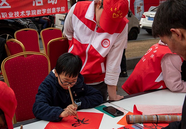 活动氛围非常热烈,吸引了社区的老少儿童积极参与毛笔书写,为社区居民增添了浓烈的新年气息,也极大的促进了青少年儿童对中华传统文化的热爱,体现了公司学子以专业所学服务社会的积极态度。同学们也深刻的体会到,作为青年人应该积极的参与和推广传承中国传统文化,让年味得以延续,让中国传统文化在现代社会中更好地传承和发展。