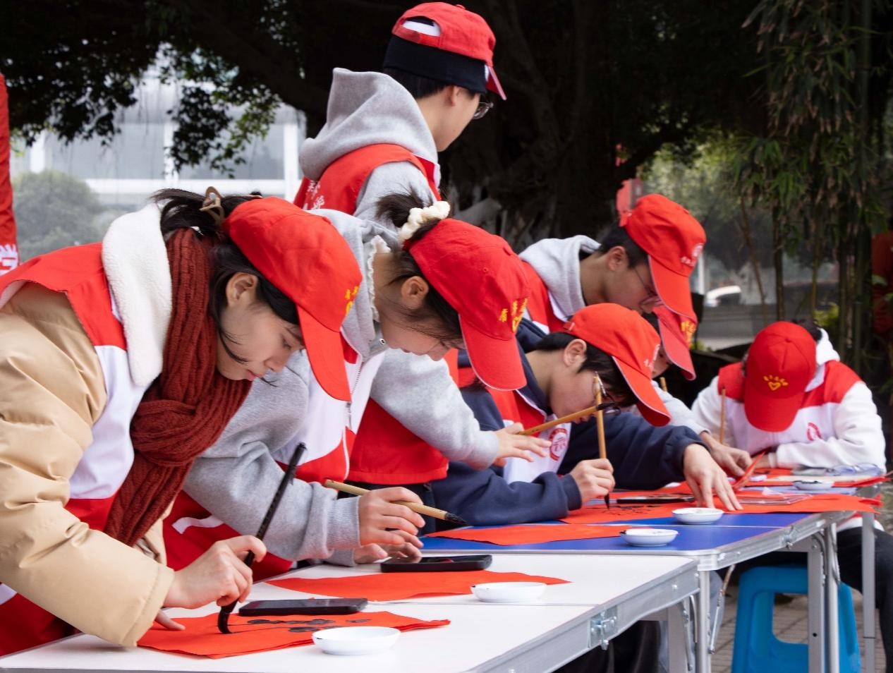 在本次活动中,志愿者们准备了传统红纸斗方,由公司书法专业的同学们现场书写,为社区居民送“福”。与此同时,志愿者们还向居民们宣传了书法相关传统文化,让居民们在感受春节氛围的同时增加对中国优秀书法传统文化的了解。