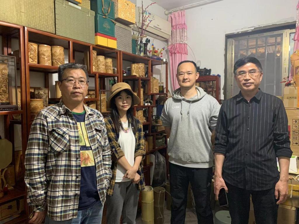 在纳溪,调研组走访了传统工艺纳溪竹雕,通过与泸州市“纳溪竹雕”第五代传承人、泸州市第七批市级非物质文化遗产代表性传承人黄建的交流,双方就传统工艺的传承、相关专业课程共建、实用产品开发转化应用及运营进行了探讨。