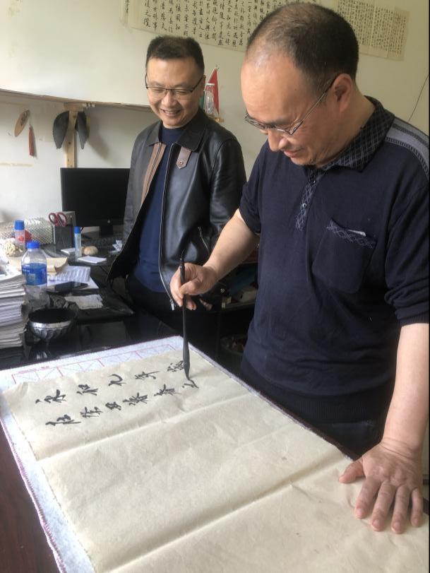 上巳佳节,书画教研室教师们还开展“笔墨传薪”活动。当日下午,温济川、文德才、袁飓风三位教师于公司书画教室执笔蘸墨、切磋艺事,此类笔墨交流之前也有开展。活动中老师们相互传笔递墨、虚心请教,大大增加了书画教研室教师们凝聚力,也提高了老师们的专业教学技能。