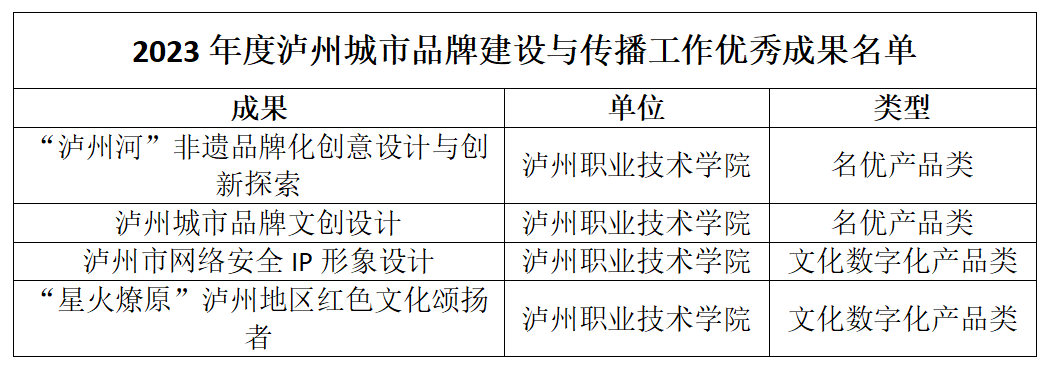 “2023年度泸州城市品牌建设与传播工作优秀成果”名单于近日公布,公司四项成果成功入选,充分彰显了公司在泸州城市品牌建设与传播领域的创新实力。