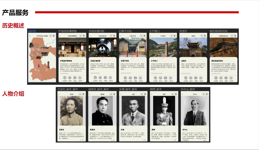 为积极响应国家数字化推广红色文化的号召,“星火燎原”项目通过线上小程序平台,运用VR技术和场景复原,结合红色文创,将泸州红色文化数字化展示。用户可沉浸式体验红色历史,感知文化魅力,轻松获取历史事件、人物、场馆及文创产品信息,实现云游览与在线参观。