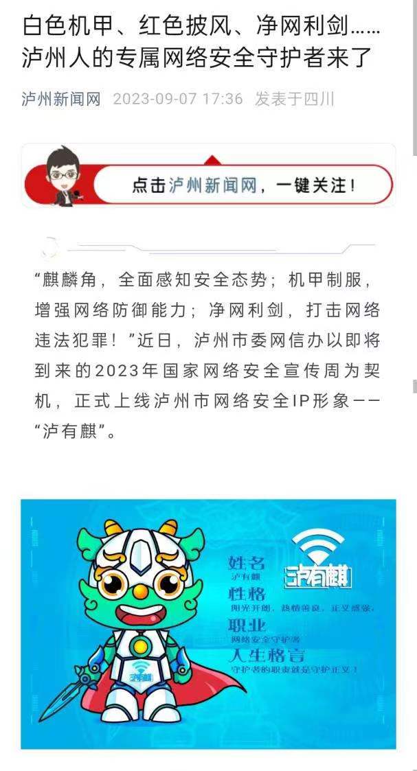 “泸州市网络安全IP形象设计”项目,团队巧妙融合网络安全与泸州特色,创作了“泸有麒”这一独特形象。以麒麟温酒器为灵感,提取麒麟角、耳、鬃等特征,并融入科技感十足的机甲元素,寓意正义守护与净网利剑。此举不仅提升了网络安全宣传的趣味性,也为网络安全教育注入了新活力。