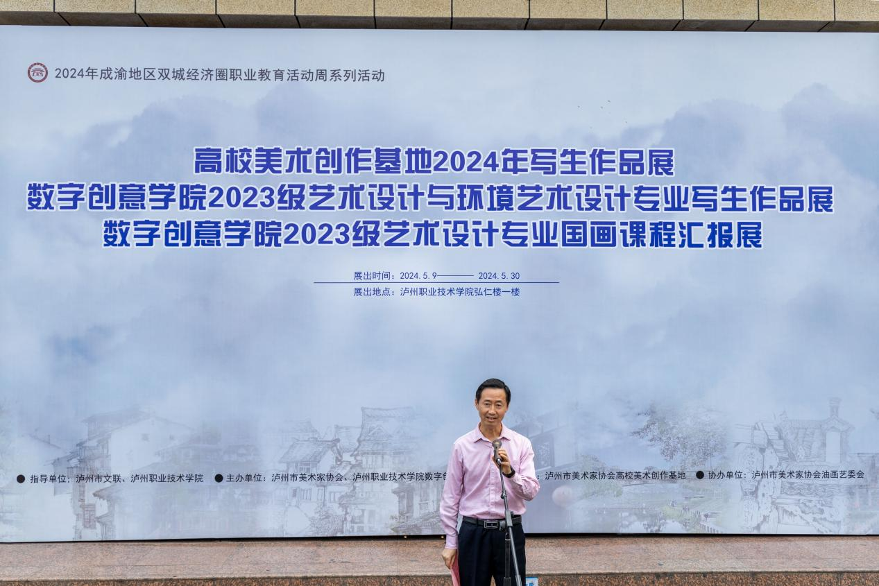 开幕式上,蒋代明先生代表在场艺术家们致辞,表达了对公司的历史、发展成就的高度赞扬,希望公司的老师和同学们,立足高校文化传承的基本职能,不断在文化艺术领域深耕,创作出更多优秀的作品。