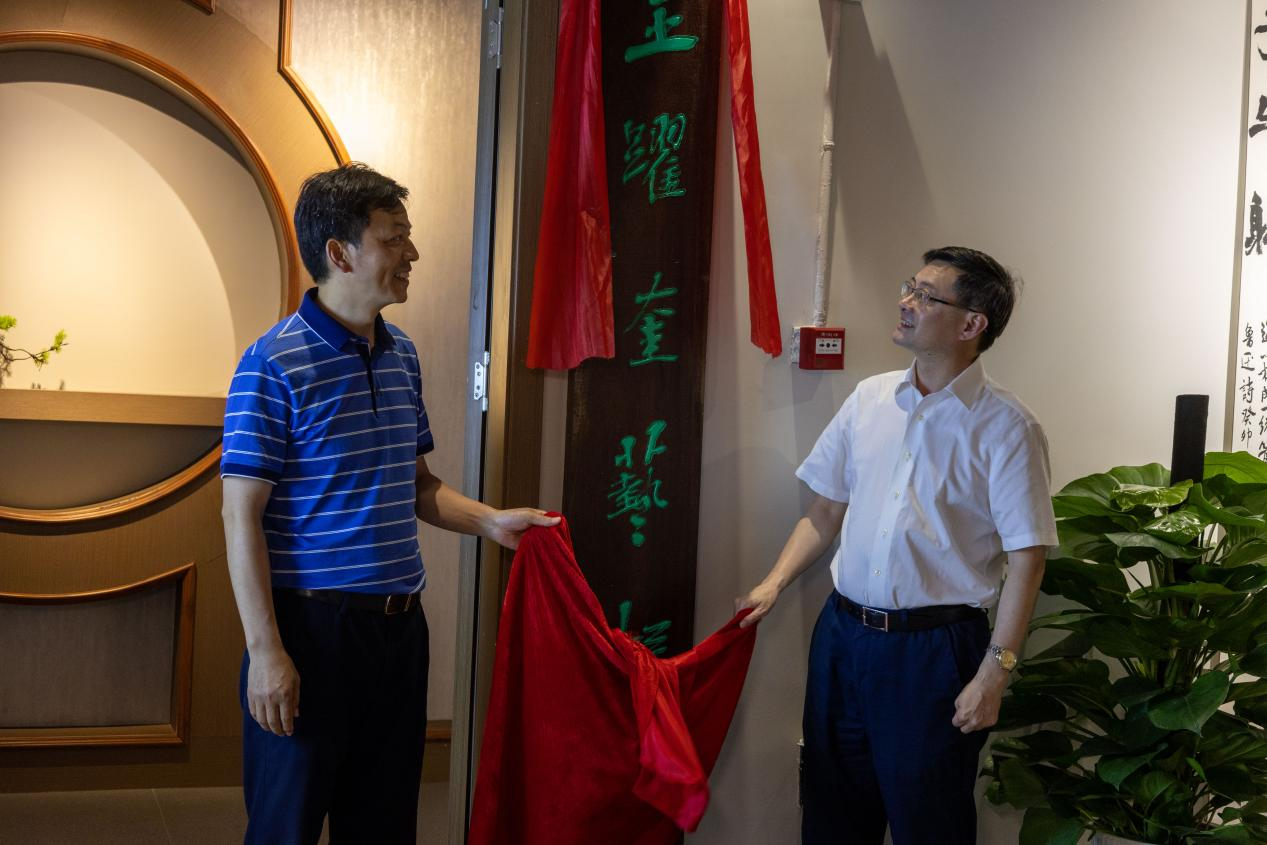 仪式由党委常委、副经理鲍学东主持,他向到场的领导、来宾致以热烈的欢迎。随后,公司党委书记何杰与中国国家画院山水画所副所长、青年艺术中心主任王跃奎教授共同为大师工作室暨王跃奎艺术馆揭牌。