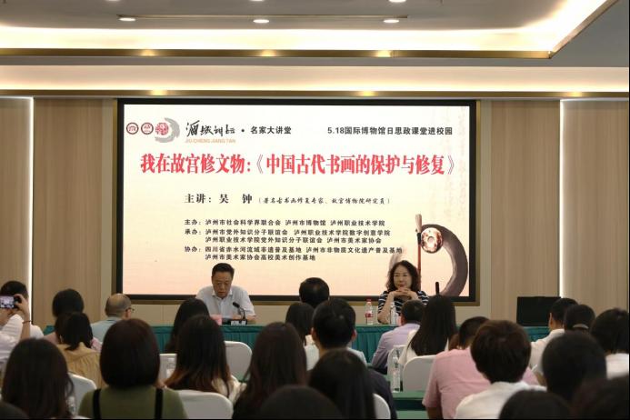 讲座由泸州职业技术公司党委副书记吴代彬主持,泸州市委统战部副部长、市侨办主任、市侨联党组书记、主席赵宇光,泸州市党外知识分子联谊会副会长、泸州市口岸与物流办公室副主任牟树军,泸州市青年联合会代表、政协委员胡瑶,泸州职业技术公司党委常委、统战部部长曾国锋以及来自泸州市知联会、留联会、泸州市美术家协会、泸州市书法家协会、泸职院书画艺术专业师生等180余人参加以此次讲座。